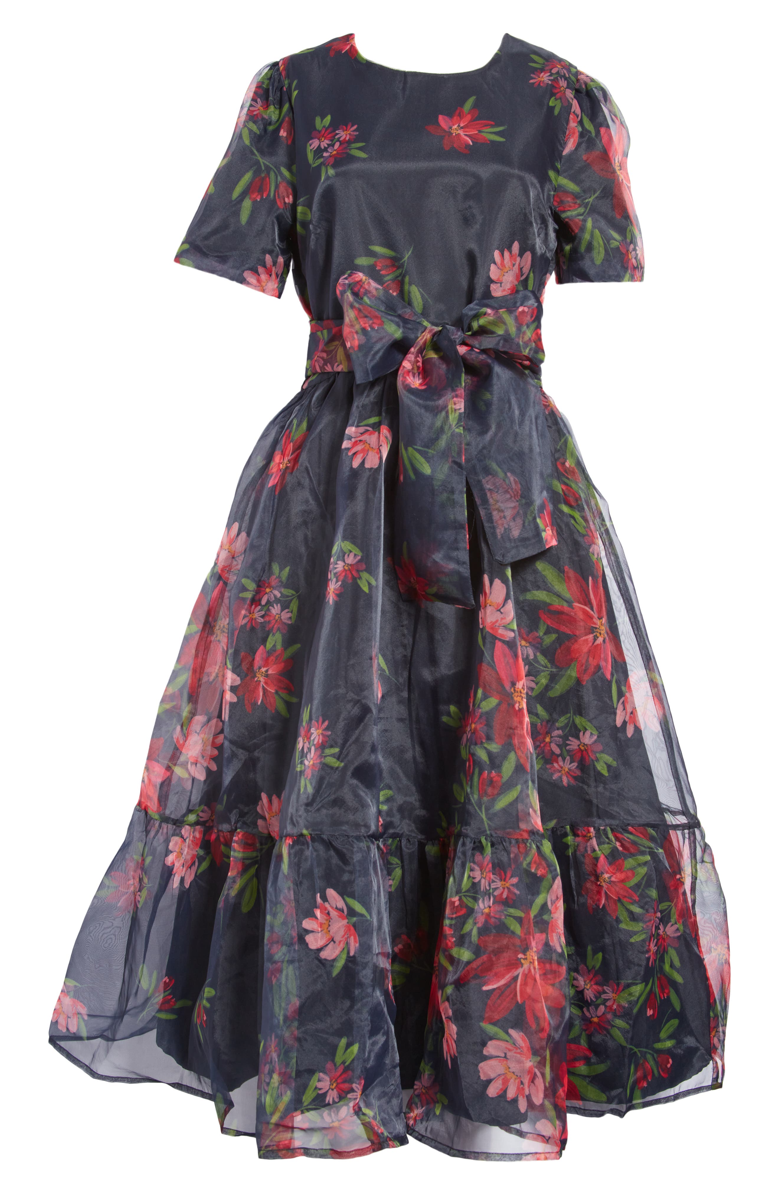 Rachel Parcell Floral Print Tie Waist Organza Midi Dress Nordstrom